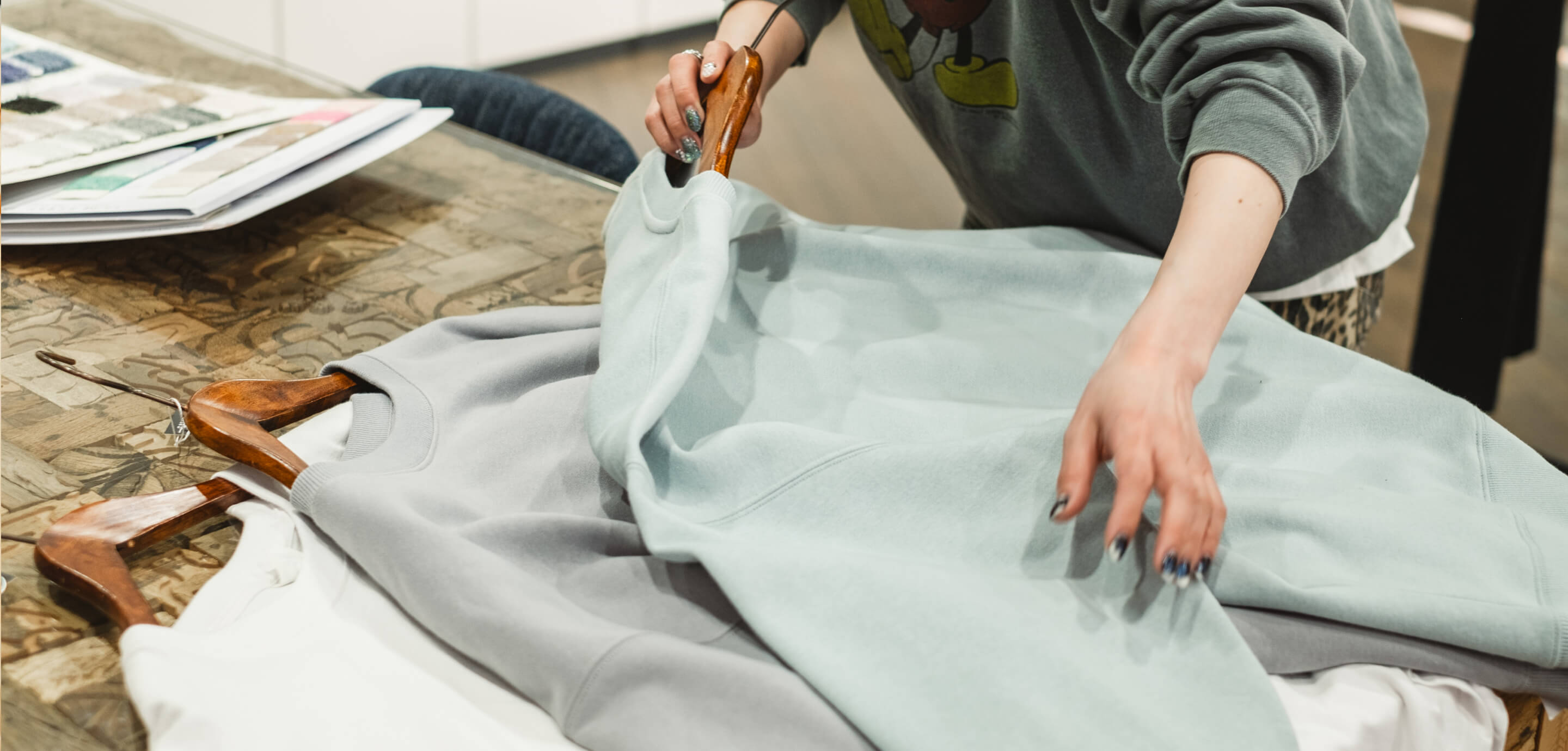 カットソー・布帛・ニットのオールジャンルのアパレルアイテムからライブ・フェス・スポーツなどのイベントグッズ制作までニーズに応じた提案が可能。アメリカにも拠点を置き、最新ストリートファッションのトレンドをキャッチしています。